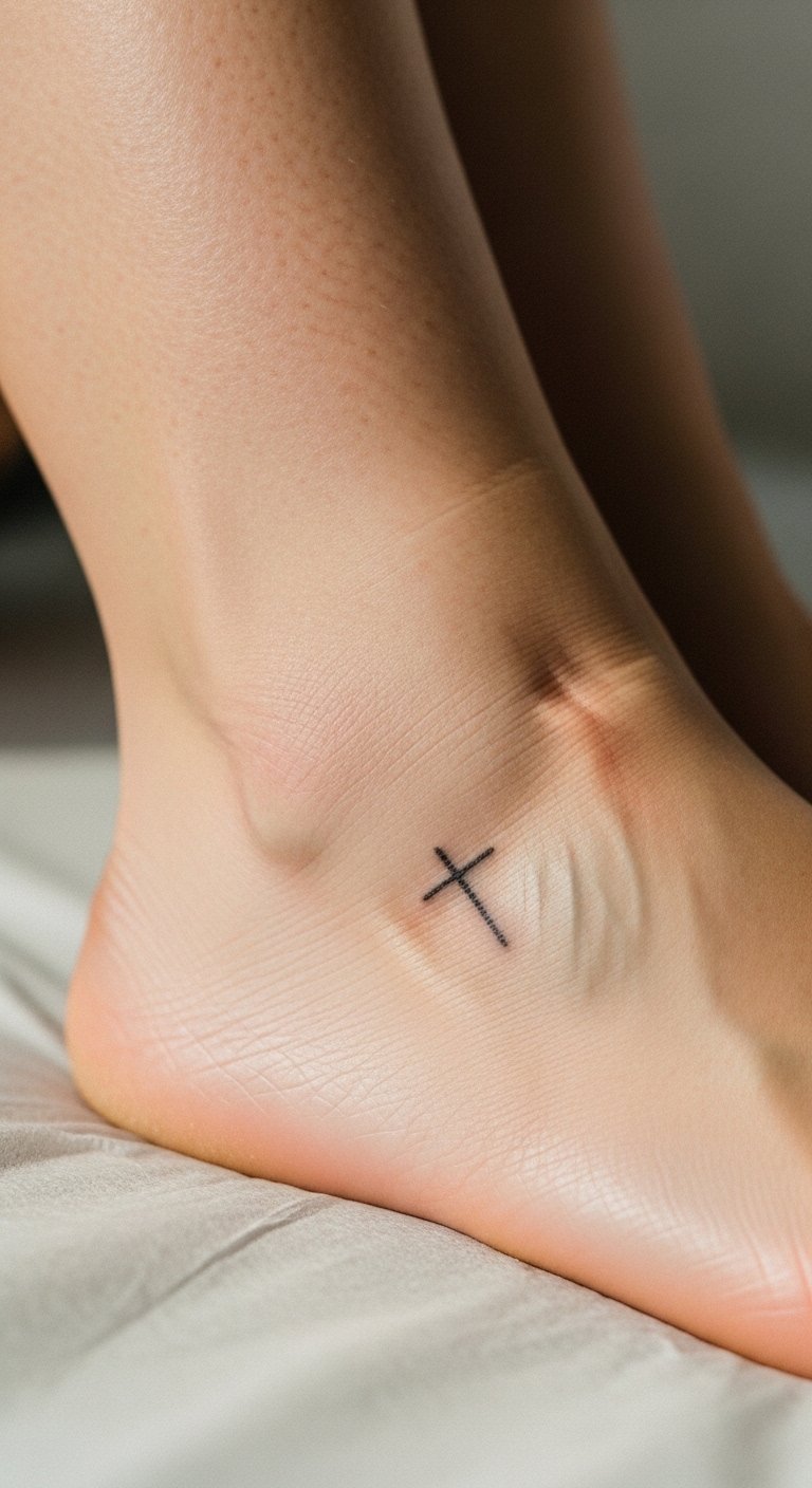 An ankle cross tattoo blends style and secrecy. It’s perfect for women on the move. Pick a design with soft curves for a feminine touch. Add flowers for extra meaning. This area conceals under socks or shoes. Expect mild discomfort, but it fades fast. Save money by researching artists online. Look for deals at local studios, often around $60. DIY practice by tracing designs on your leg with washable markers. Wear comfortable shoes after. This tattoo shines with jeans or dresses. Make it your own by adding a personal twist. It’s an easy way to carry faith every step.