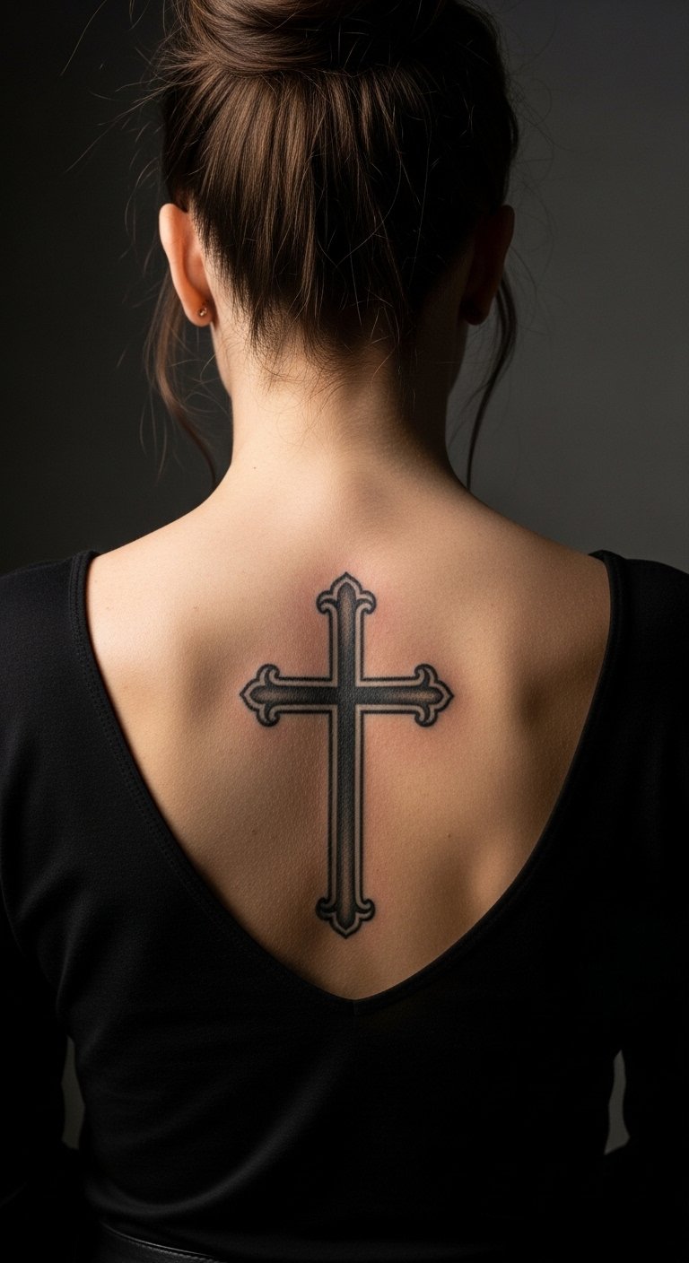 A bold back cross makes a clear statement. It’s for confident expressions. Choose thick lines. This design demands space. Plan for recovery. Get it for $100. DIY by outlining at home. Use body art tools. Moisturize daily. This tattoo empowers boldly.