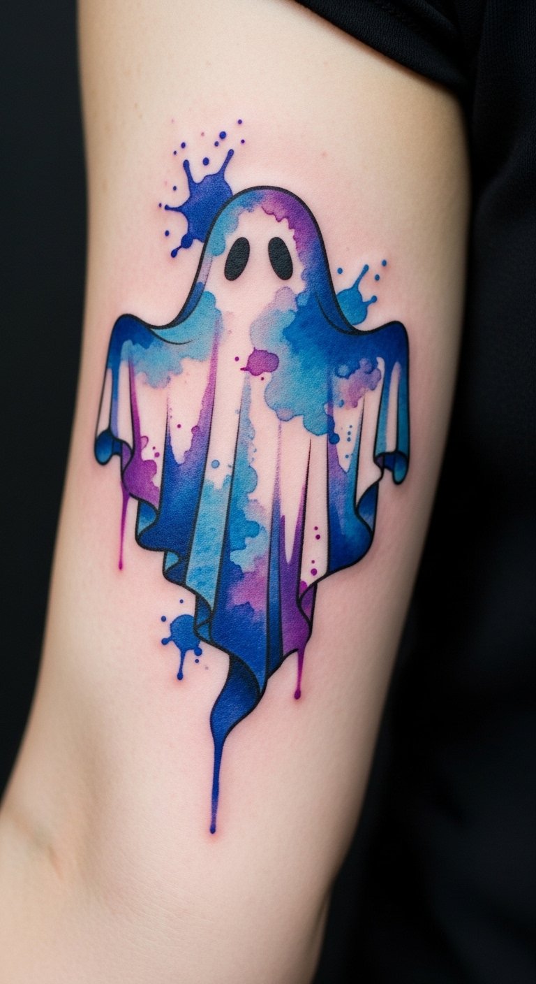 6. Watercolor Ghost Tattoo