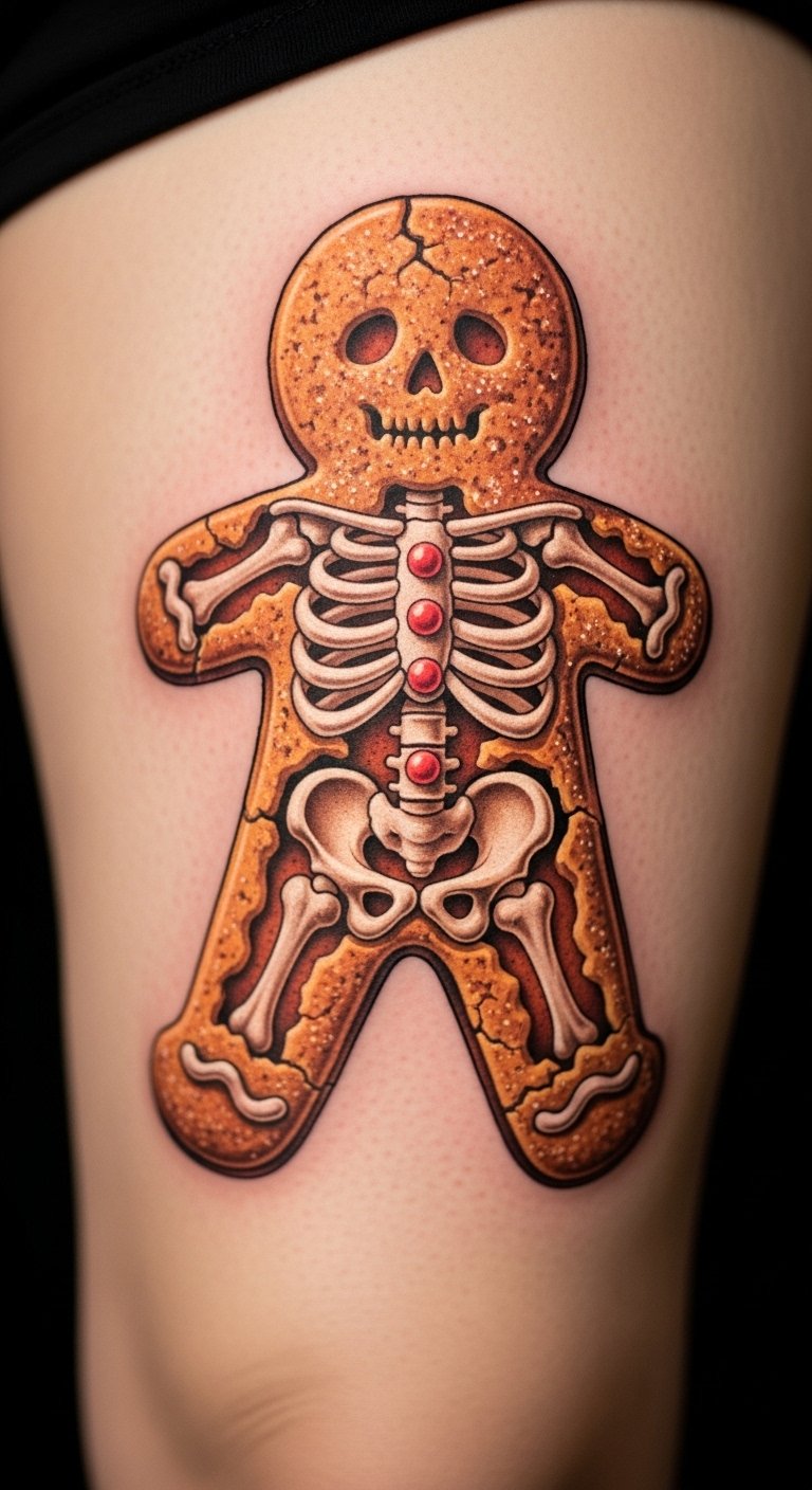 Turn gingerbread into a skeleton for holiday spook. It has icing bones and a smile. Place it on your thigh for cover options. Get gingerbread cutouts for temporary use at low price. Draw one with crayons, adding skeleton parts simple. Cookie cutters help shape it at home. This keeps expenses down. The tattoo works for seasons. Opt for edible looks to mimic. Personalize with flavors in art. Quick ideas save time.
