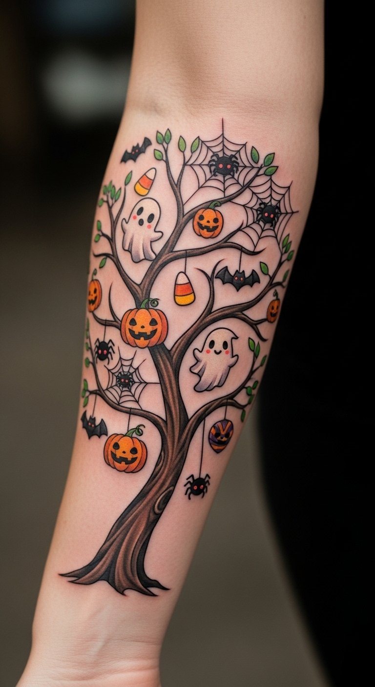 Christmas-Halloween tree mixes baubles and pumpkins. It’s a holiday mash. Spot it on your arm for seasons. Use tree ornaments for stencil ideas at low cost. Draw the tree with mixed markers, decorating fast. Holiday cards provide patterns. No extras required. This tattoo celebrates all year. Keep ornaments simple for deals. Personalize themes in sketches. Apps make it easy.
