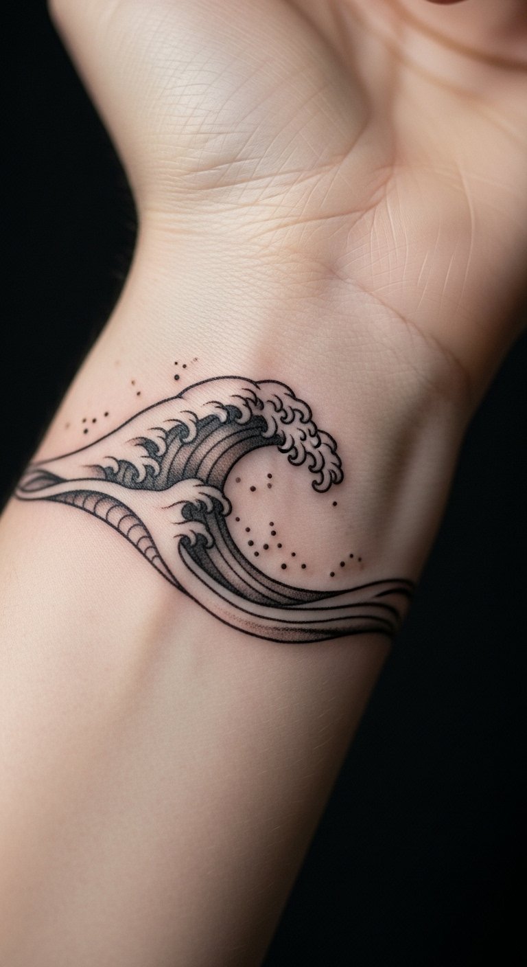 Waves represent flow and calm in a small design. Use straight lines for a clean wave effect. Prices start at $45 for something this size. Draw waves on your ankle with a marker to plan ahead. Position it on your wrist for frequent views. Expect a short session with minimal unease. Wave tattoo complements beachy styles effortlessly. Keep it moisturized for longevity. Link it to travel memories for meaning. This option is perfect for a quick, cheap update.