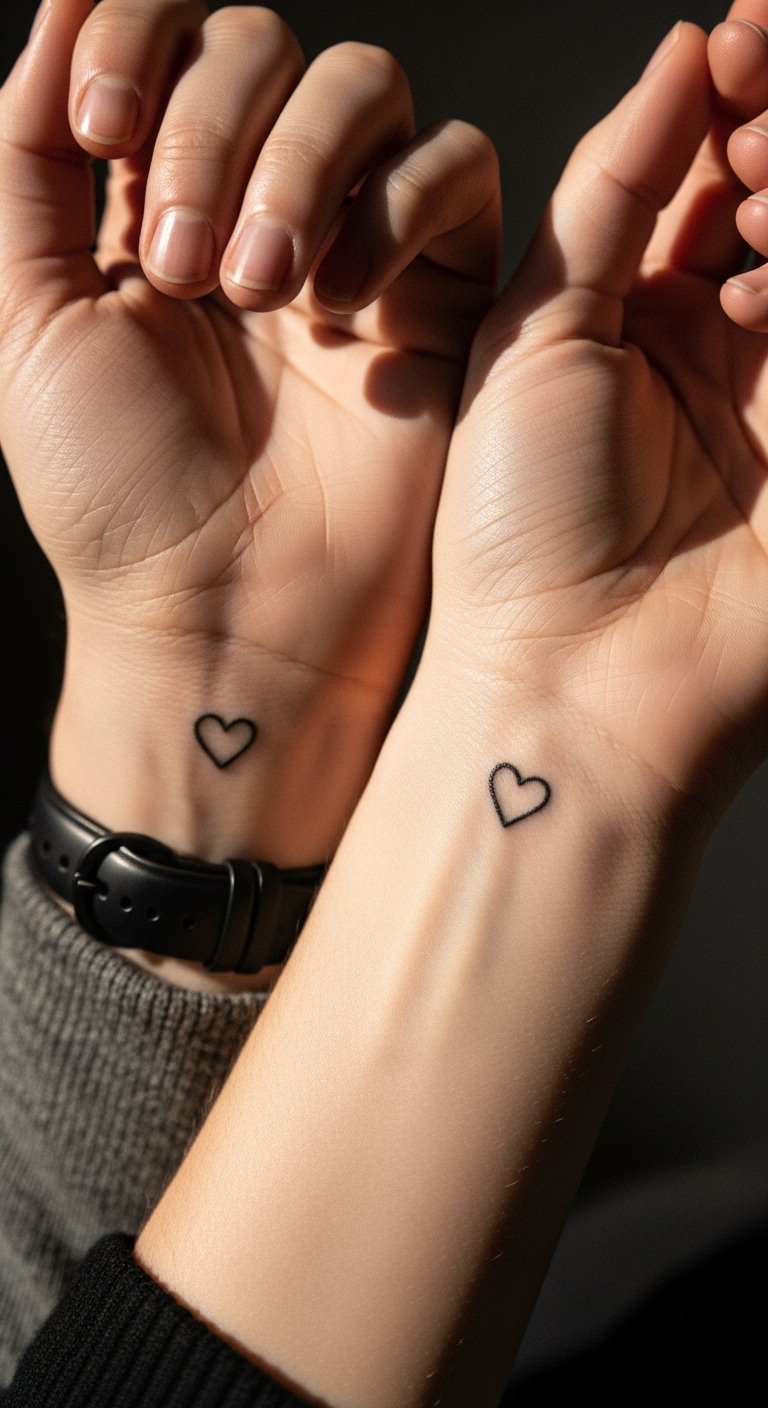 Matching hearts are great for bonds. Design identical ones for fun. Dual tattoos cost around $80 total. Draw pairs on each other to plan. Place on fingers for shared visibility. Quick work means less hassle. Matching tattoo strengthens connections affordably. Care for them together. Use as a gift idea. This builds memories on a budget.