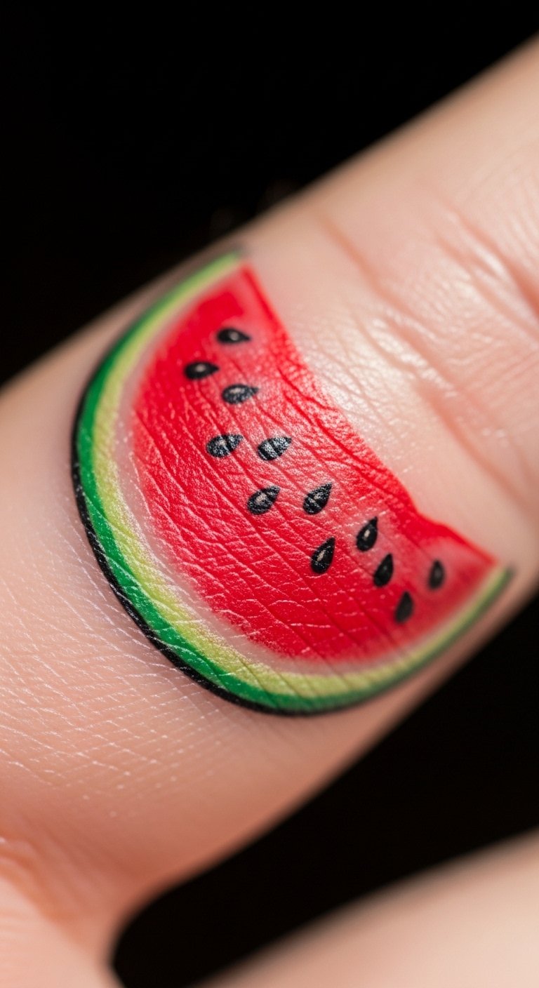 Watermelons bring quirky joy. Add seeds for detail. Cost around $40. Draw fruit on your hand to visualize. Put it on your toe for playfulness. Fast and easy to get. Watermelon tattoo livens up summer looks. Keep hydrated skin for vibrancy. Make it a fun symbol. This is a cheap way to smile.