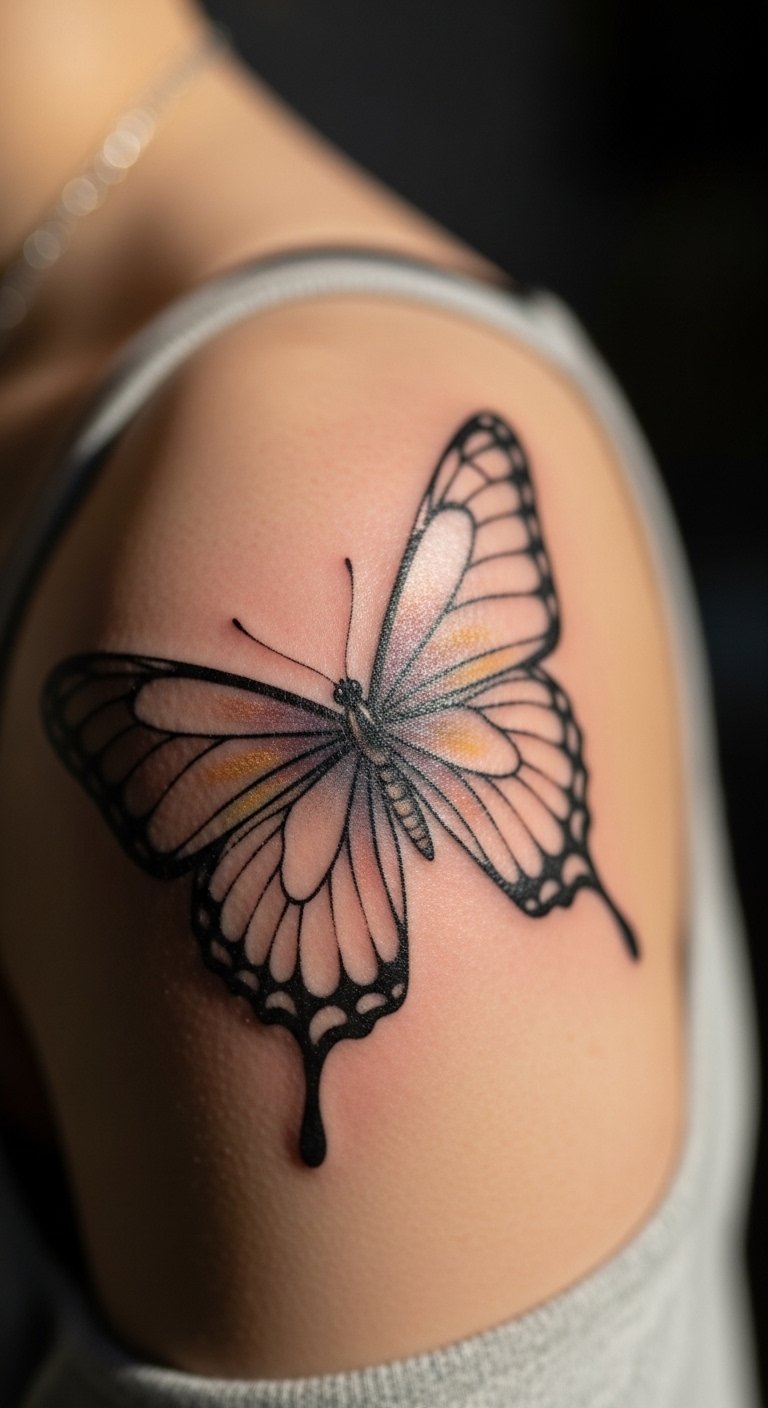 Butterflies symbolize change. Choose detailed wings. About $50 to start. Trace butterflies at home. Place on your back for subtlety. The tattooing flows smoothly. Butterfly tattoo refreshes your appearance. Use sunscreen for upkeep. Tie to personal growth. Affordable for all.
