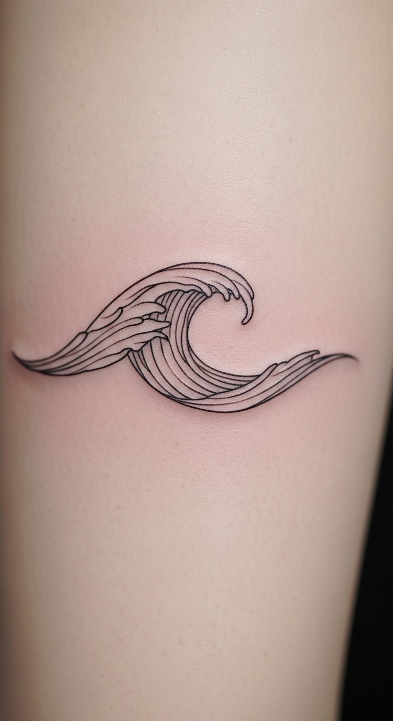 Fineline waves are precise. Use extra thin lines. About $40. Practice drawing waves. Place on your leg. Quick and neat. Fineline tattoo offers elegance. Maintain lines sharp. Add to routines. Cost-effective style.