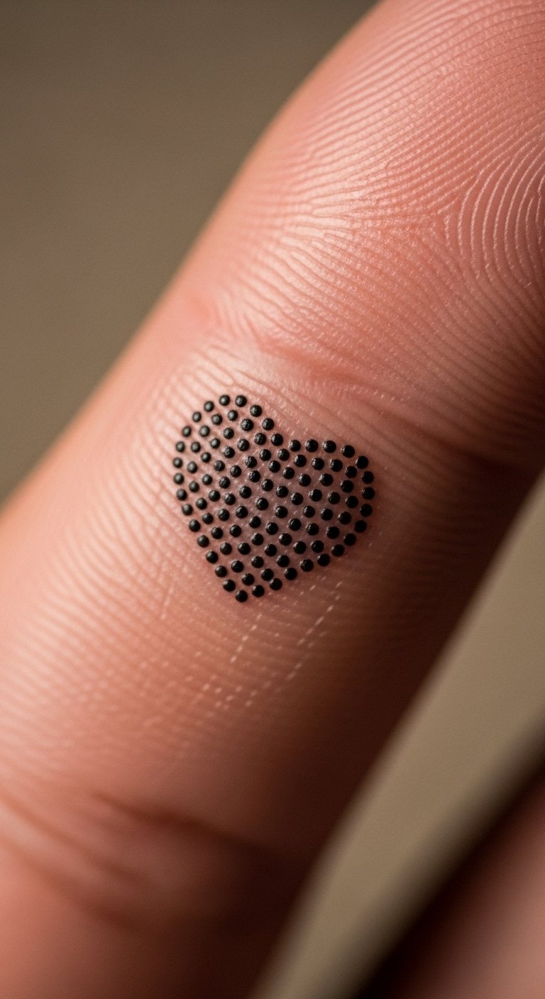 Dotted hearts have unique feel. Arrange dots creatively. Low at $35. Dot paper first. Put on your finger. Simple technique. Dotted tattoo adds texture. Keep dots intact. Fun and budget-friendly.