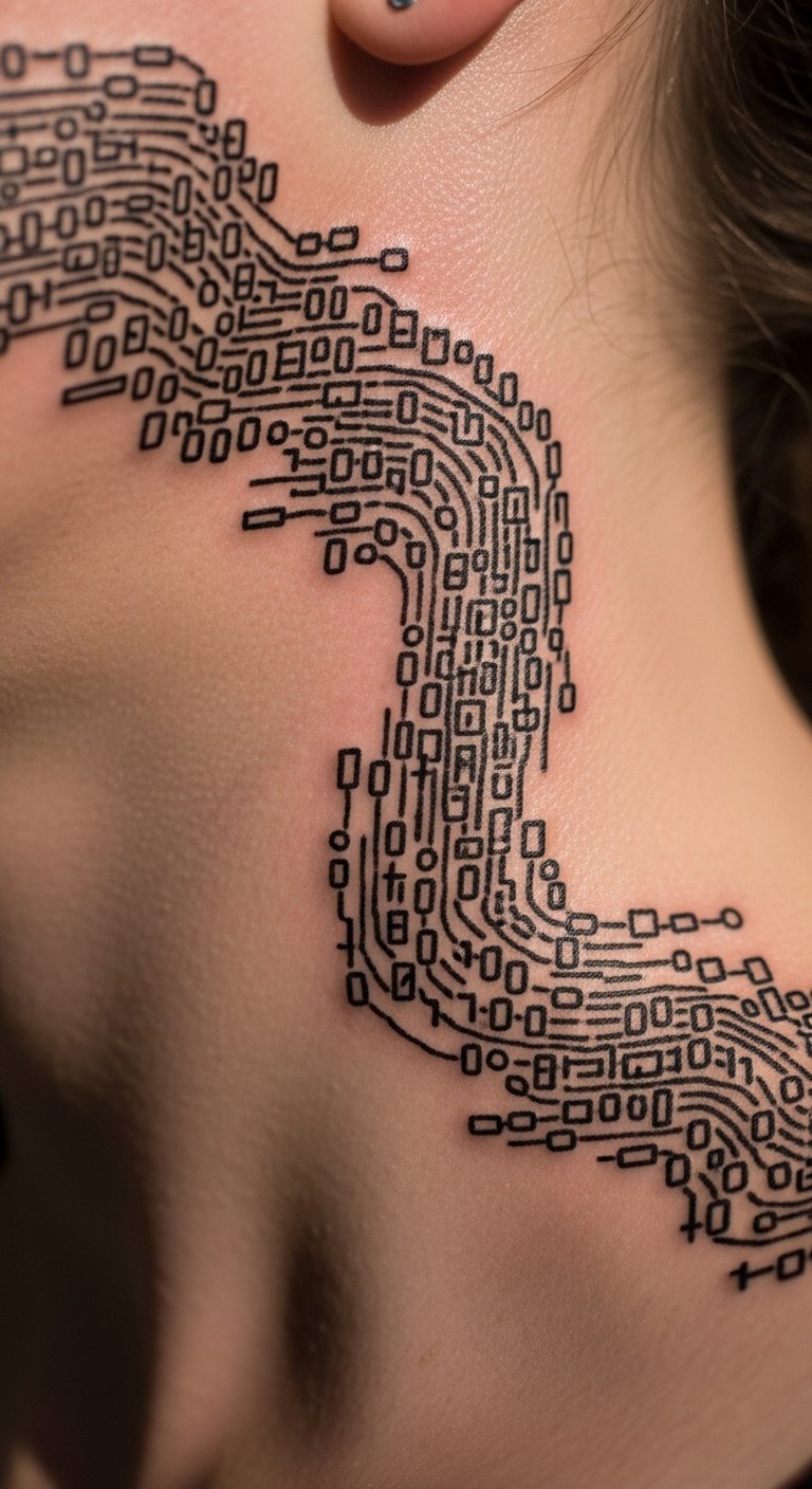 9. Data Stream Neck Tattoo