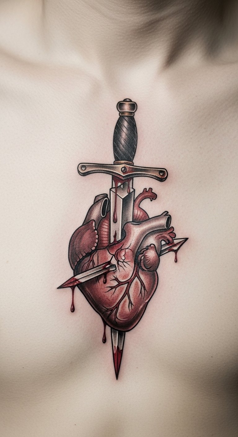 Dagger Through Heart Tattoo
