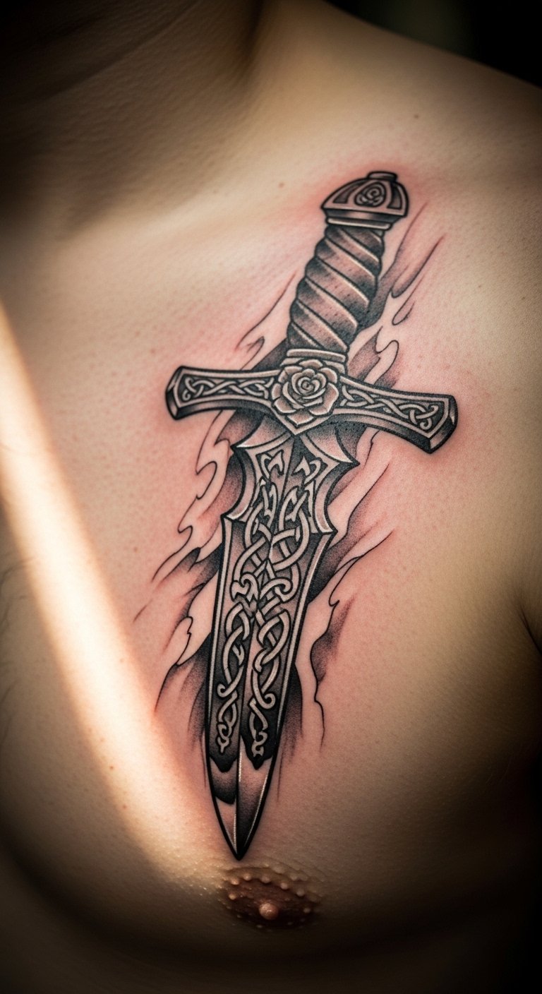Chest Dagger Tattoo