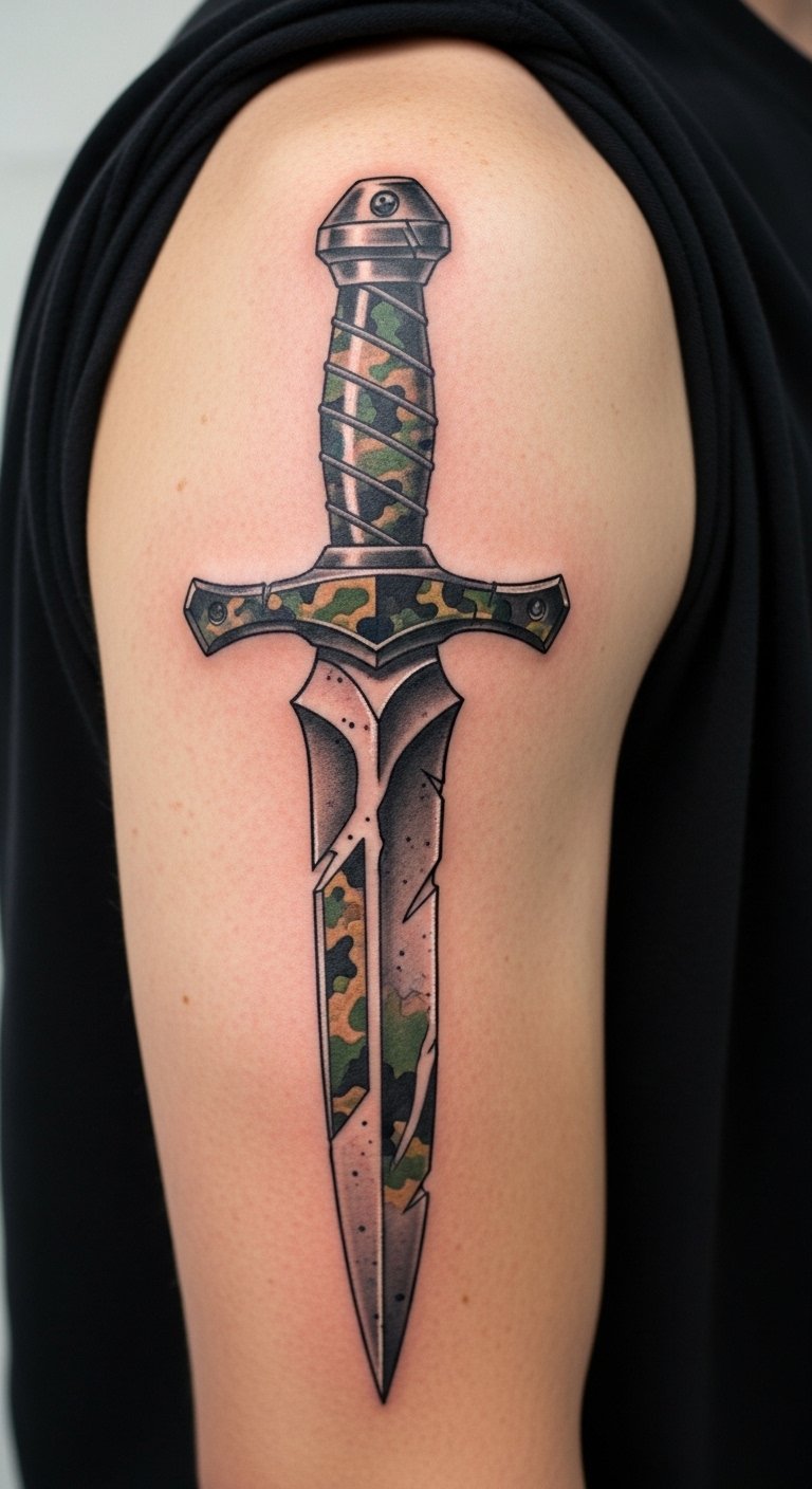 Military-Style Dagger Tattoo