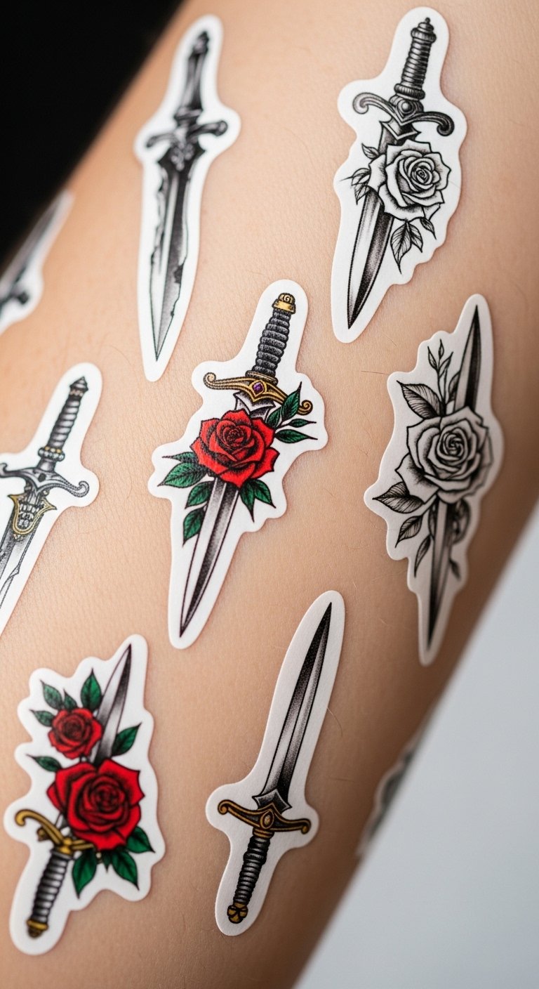 A temporary dagger tattoo lets you experiment without permanence, ideal for beginners. It’s a low-risk start. Order packs online for pennies. Temporary dagger is perfect for testing. Apply with water at home. Use it on visible spots like hands. This option builds confidence and fun. Remove easily for changes.