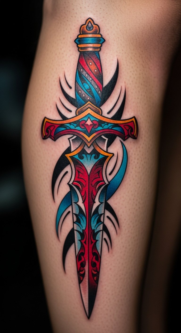 Colorful Dagger Tattoo