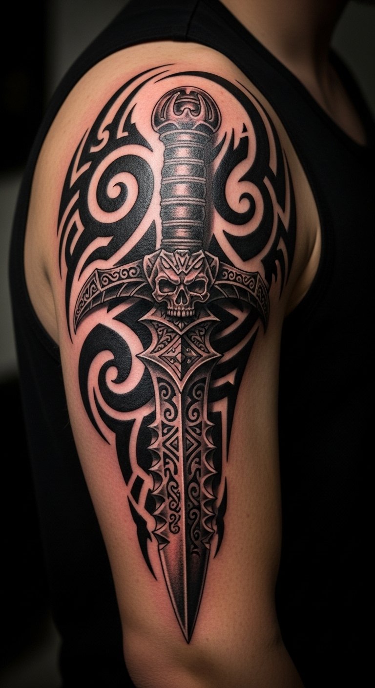A warrior dagger tattoo celebrates fighters, drawing from cultural roots. It’s empowering and historical. Draw tribal patterns. Budget: Print cultural designs. Warrior dagger honors heritage. Test with themed stickers. Ink on arms for strength. This tattoo empowers and unites.
