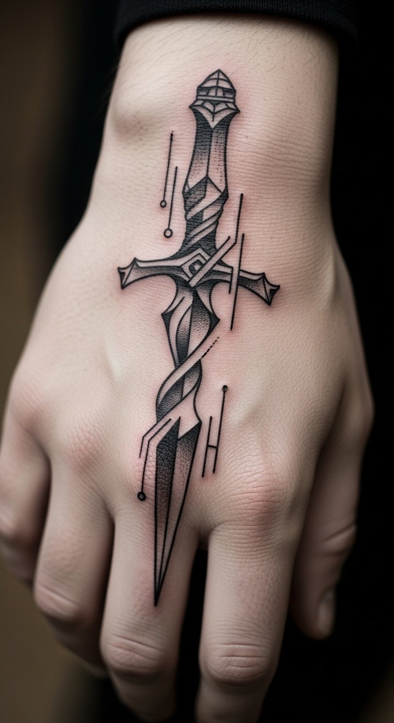 Abstract Dagger Tattoo