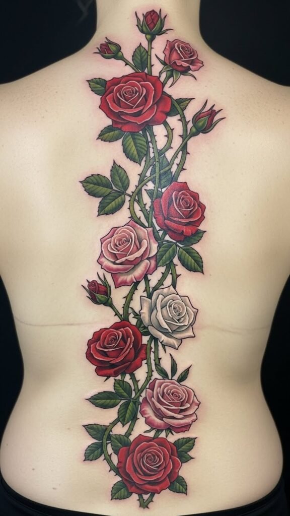 Roses arranged bring order. Stack them along your spine. Go with fine lines for elegance. Pick budget-friendly artists. Arrange roses in a notebook sketch. It makes planning fun. Adjust visibility with your wardrobe. Heal with easy home care. This tattoo enhances your personal aesthetic.