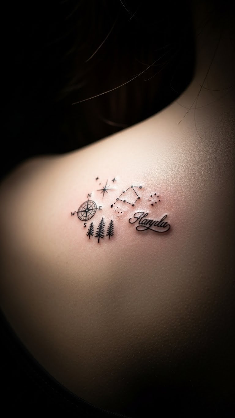 Stars bring a cosmic vibe to your back. Opt for fine-line dots that connect simply. Position them along the lower back for impact. Begin with a few stars to keep it light. Local artists offer this at budget rates. Sketch your own pattern using apps for fun. It makes the process feel hands-on. Choose spots that hide under clothes if needed. This design heals fast with basic care like unscented soap. Pair it with everyday outfits for versatility. Add more stars later if you like. The key is keeping it dainty and meaningful.