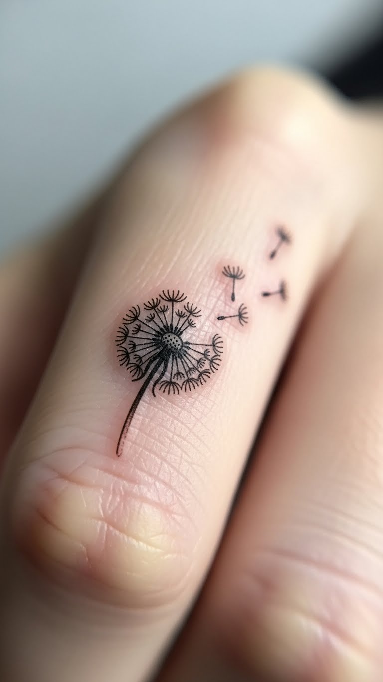 Small tattoos pack big meaning. This dandelion fits on a finger. It symbolizes optimism in small ways. Go for your hand to see it daily. Search for quick, cheap artists. Some do tiny work fast. Draw mini versions at home. Get creative. This design means hope without fuss. Stay under a certain size to lower costs. Add a single element. People choose this for daily reminders. Hide it if needed. Real idea: ink one for quick sessions. Use phone sketches to plan. It’s affordable and easy. Focus on what you want.