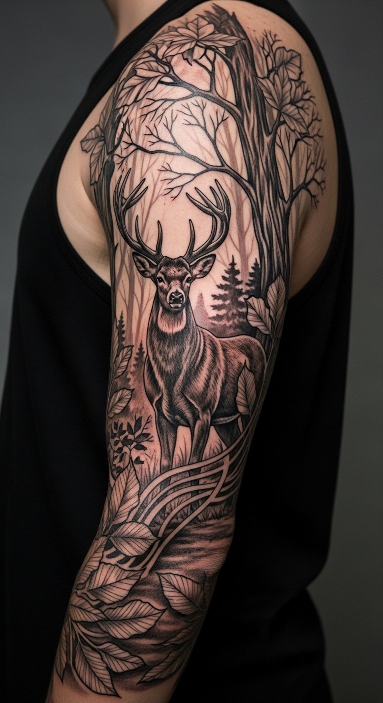 Half-Sleeve Deer Forest Scene