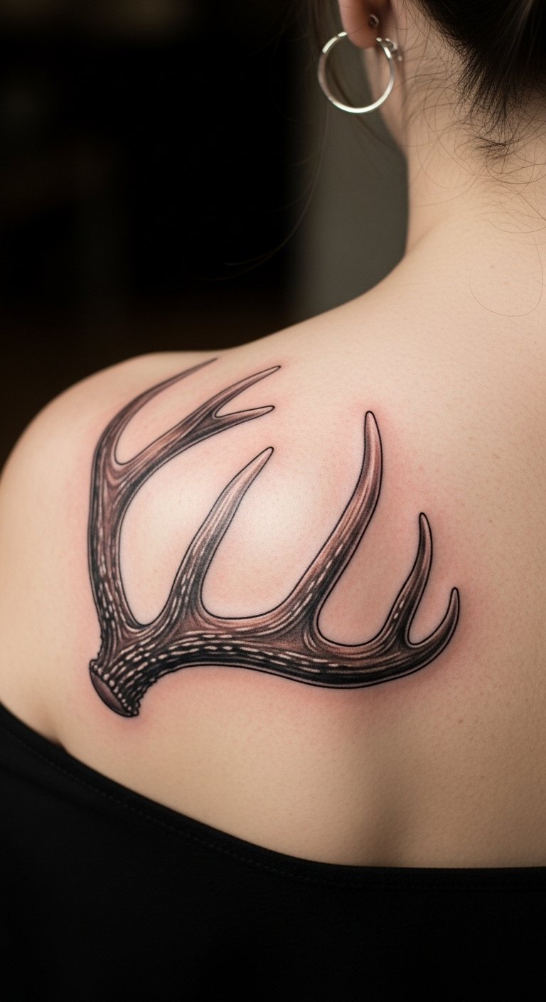 Life-like antlers branch out with real fur texture. They stand for renewal and power. Practice drawing them with a cheap pen and paper. Watch free videos to get the curves right. Tape a printout to your body to preview. Choose your back for a private spot. Ask friends for artist recommendations to cut costs. Sessions often run $100 for small areas. Keep skin moist with household cream during recovery.