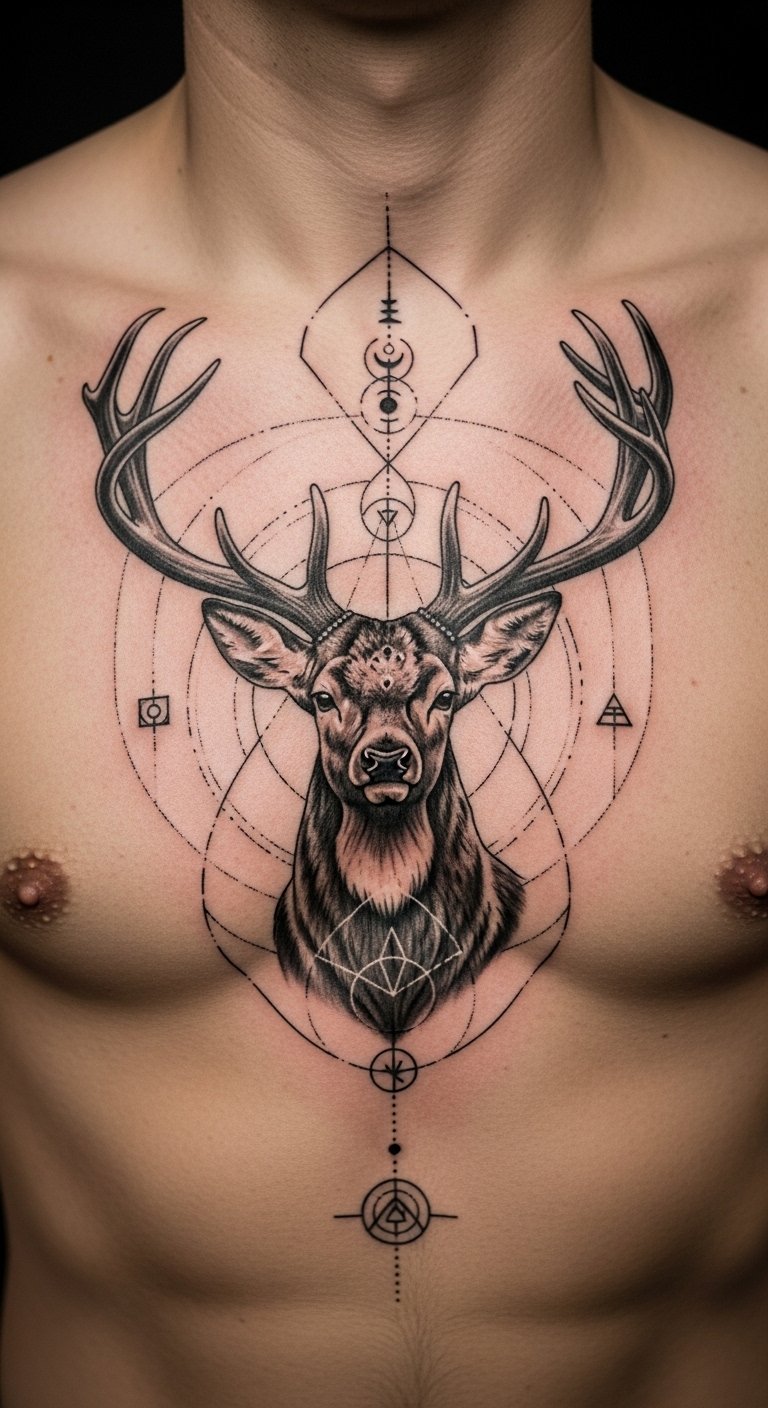 A deer points the way with guiding lines. It means protection and inner calm. Jot down your personal symbols on paper first. Free templates online spark ideas. Try it on with temporary ink kits under $10. Place it on your chest for heart-felt vibes. Reach out to studios for custom options at low rates. Aim for $120 total. Care for it with gentle washes using soap you have.