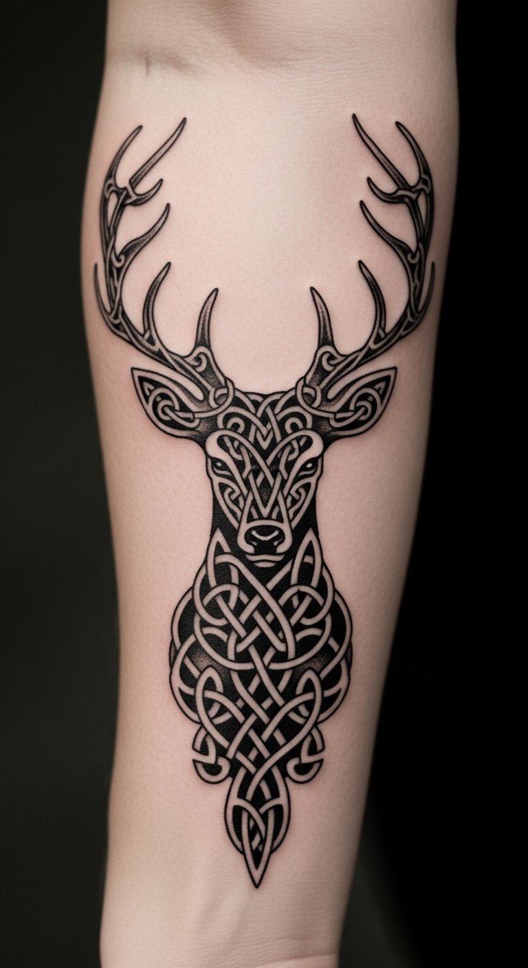 Knots weave through a deer for heritage vibes. It links to old traditions of strength. Sketch knots using string and paper at home. Free guides online show simple steps. Stick a design on with adhesive to test. Go for your forearm to mix function and art. Find deals through community boards for artists. Prices hover around $180. Heal it with natural oils from your shelf.