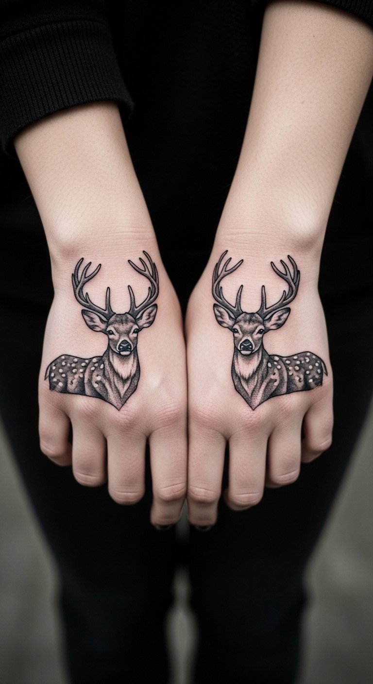 Two deer mirror each other for shared bonds. It works for couples or friends. Sketch pairs on paper together. Free apps let you match designs fast. Use temporary pairs to test hands. Hands keep them visible daily. Search for duo specials at studios. Costs share to $100 each. Heal with shared simple routines.