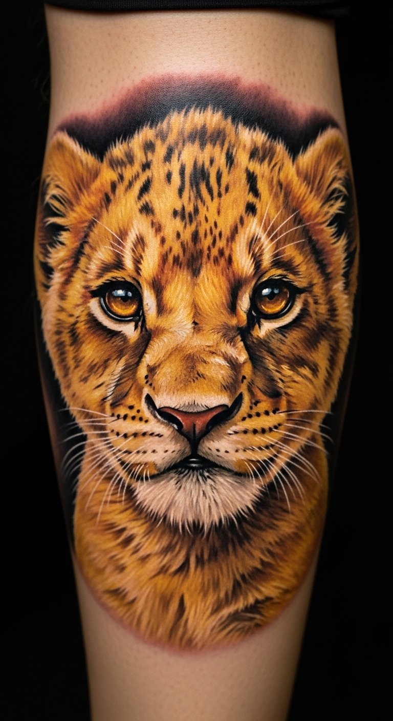 A realistic Simba on your calf captures the lion’s spirit vividly. Practice with a photo reference and pencil sketches. It’s a free way to get details right. Artists might charge $250 for this level. Go for grayscale to cut color costs. Add pride rock in the background for flair. The design lasts with proper care. Moisturize the area daily after. Digital previews help refine it. Keep it simple for better results.