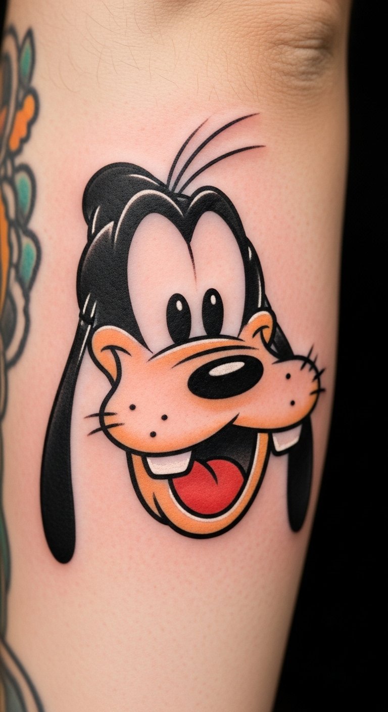 A Goofy face in traditional style on your forearm laughs with you. Doodle it casually. No expense. Price $110. Stick to outlines. Personalize eyes. Forearms heal quick. Protect from sun. Apps check fits. Enjoy simply.