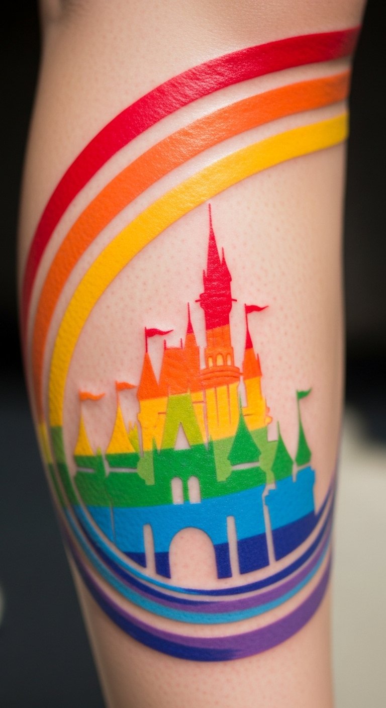 A rainbow castle on your leg bursts with color. Color a drawing. Engaging prep. Price $190. Focus on rainbows. Add your flag. Legs stay strong. Sunscreen preserves. Digital mocks help. End on a high note.