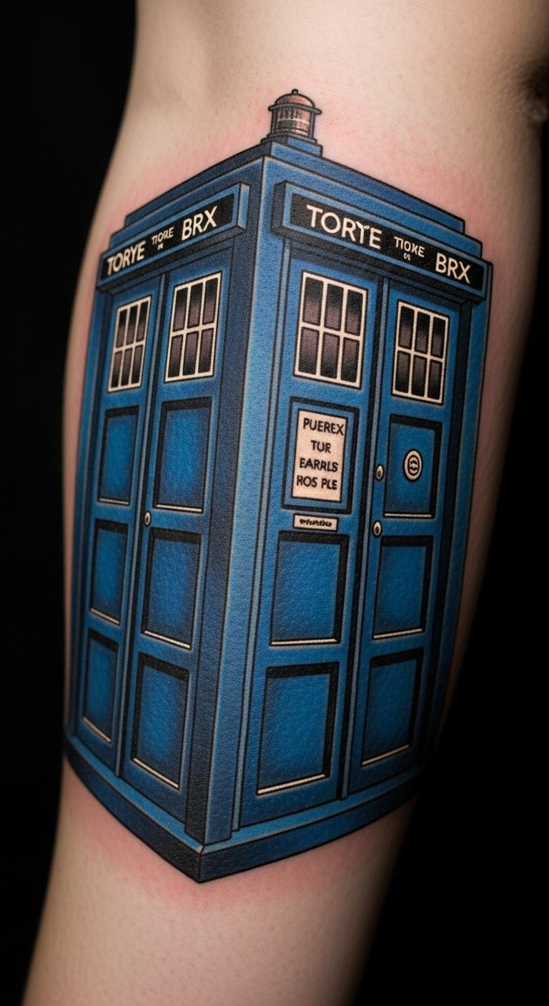 Picture a simple TARDIS outline on your skin. This design stands out as the heart of Doctor Who. Start with a small sketch on paper. Use affordable stencils from online stores. Pick a local artist for under $100. Go for black ink to keep costs low. Add your own twist, like a tiny date below it. This tattoo fits anywhere, like your wrist. Try drawing it first with a henna kit at home. You’ll feel connected to the show right away. Keep it small for less pain and money. Bold colors pop, but stick to basics if you’re new.
