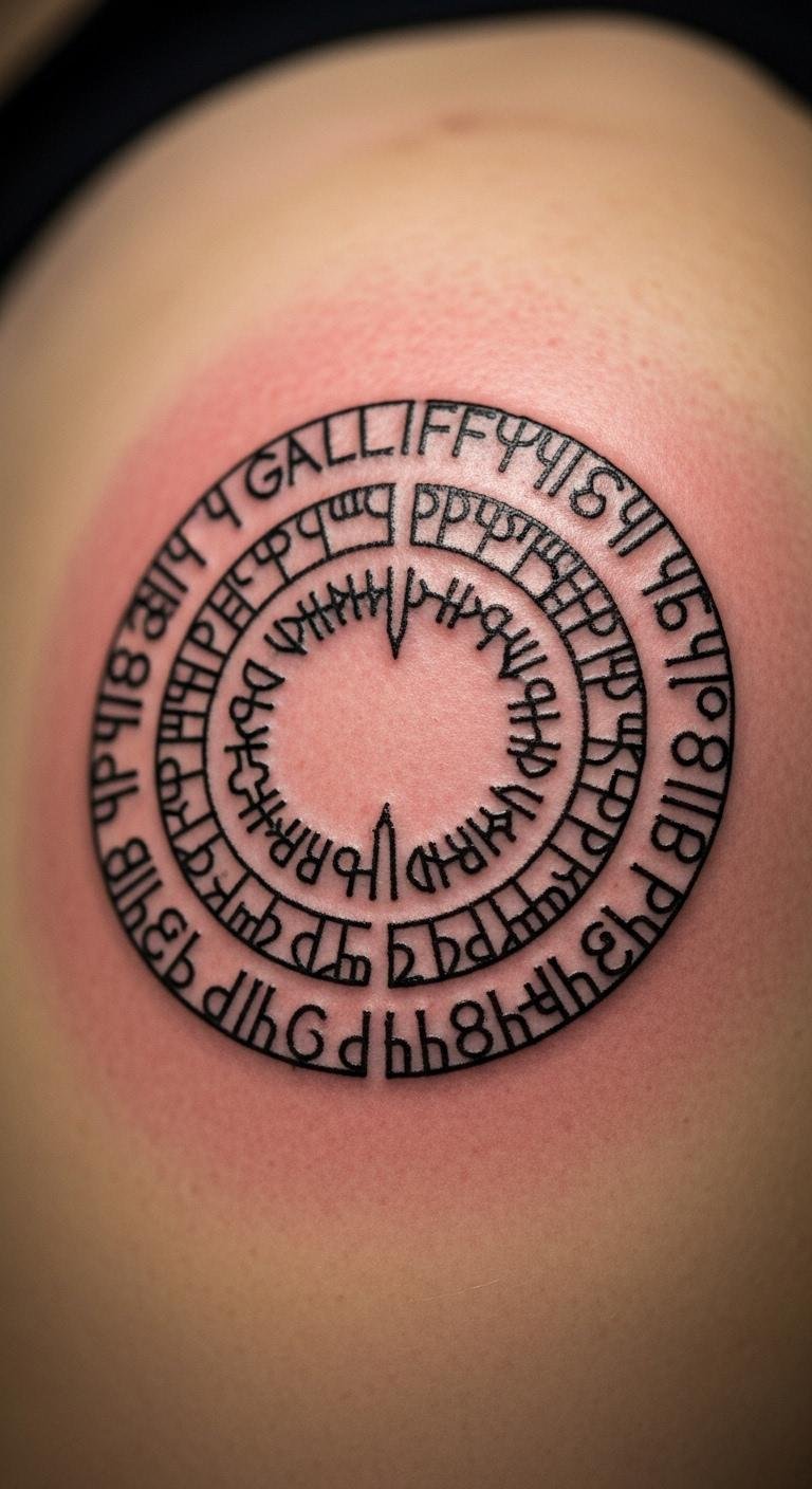 Geometric Gallifreyan adds patterns. Outline shapes first. Download designs cheaply. Try your side. Artists charge $80. Use geometric tools at home. Mix in lines. It feels structured. Keep it neat. Draw on grid paper. Fans appreciate the precision.