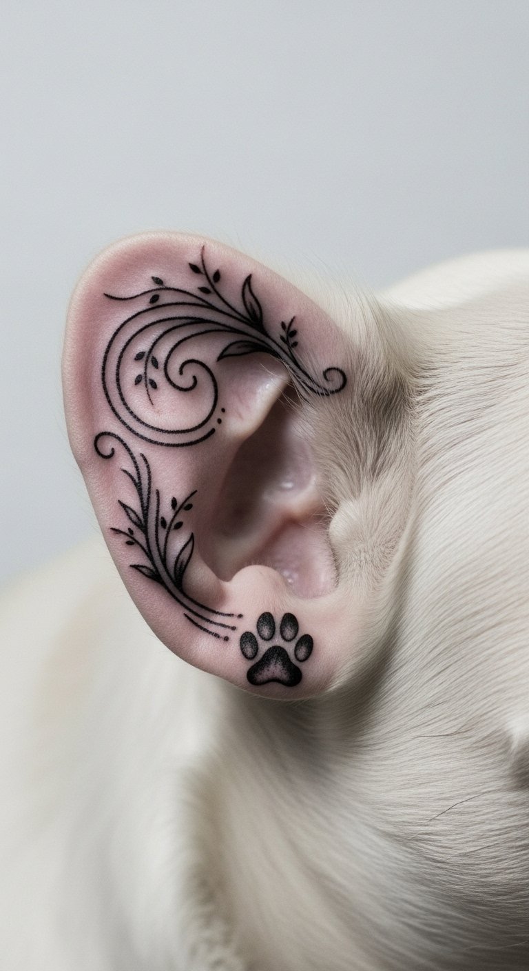 A minimalist ear outline tattoo keeps things clean and modern. Start by tracing your pet’s ear shape on paper with a pencil. Use a phone app to refine the design quickly. Stick to black ink for a timeless effect. For low cost, print stencils at a copy shop for under $5. Put it on your ankle for subtle style. Real home idea: use henna from the kitchen to try it temporarily. Break the process into steps: sketch, test, then go pro if needed. This approach lets you experiment without big expenses. Many people add it to existing tattoos for variety. Keep it straightforward to match your daily life.