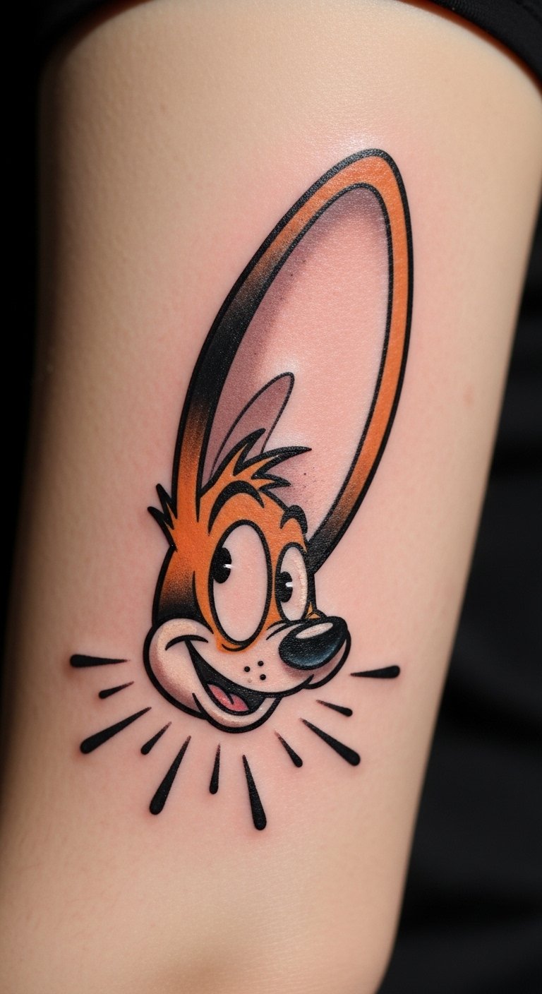 A whimsical cartoon pet face tattoo brings humor. Draw big eyes on paper. Add funny features. Find free cartoons online. Use markers for trials. Site on your hand. Home idea: draw with crayons. Keep it playful. This lightens the mood.