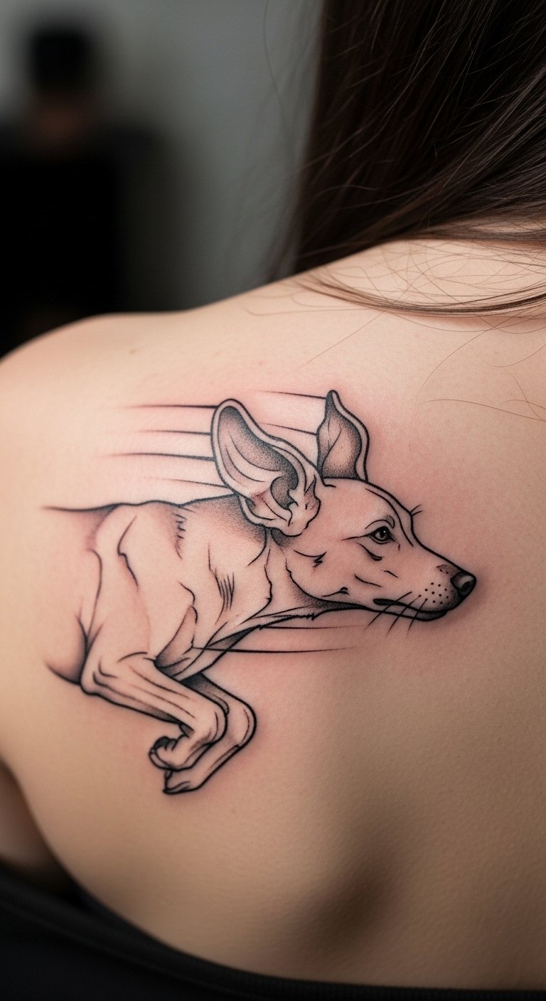 A dynamic action pose design tattoo captures energy. Sketch a running dog. Add motion lines. Find inspiration online. Use pastels for tests. Site on leg. DIY: animate drawings. Keep it active.