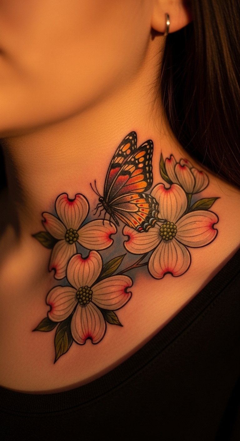 Pair your dogwood with a butterfly for extra flair. It adds movement to the flower. Opt for a medium size to save money. Draw butterflies with colored paper cutouts. Explore combo ideas on free art sites. Put it on your collarbone for elegance. Look for bundle deals with artists. Heal with honey from home. This mix brings joy to your skin.