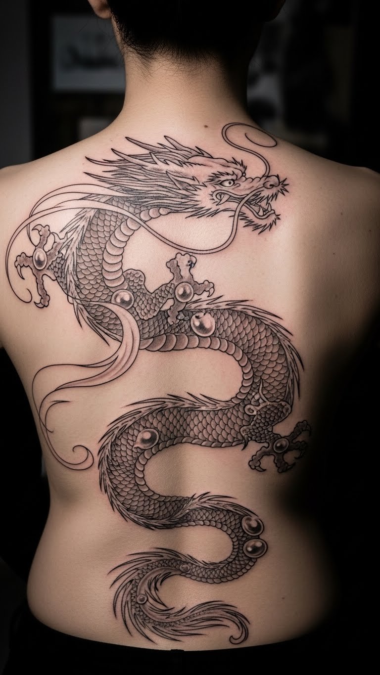 See a classic Chinese dragon across your back, wise and grand. Honor the stories. Trace cultural art. Use washable tattoos for trials. Price: $300–600. Add personal icons. Be patient with sessions; use creams. It stands for luck. Back for impact. Actions: learn basics, choose artists, and celebrate. This ink inspires.