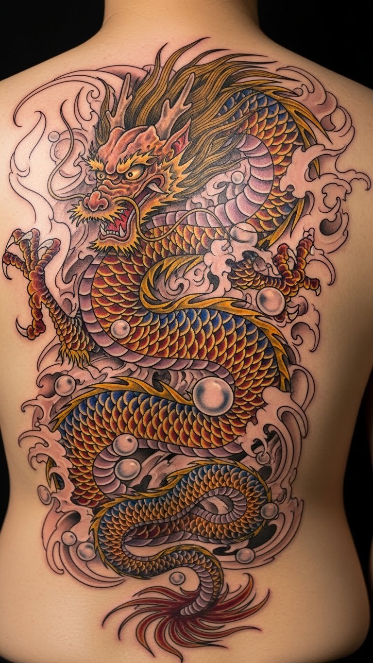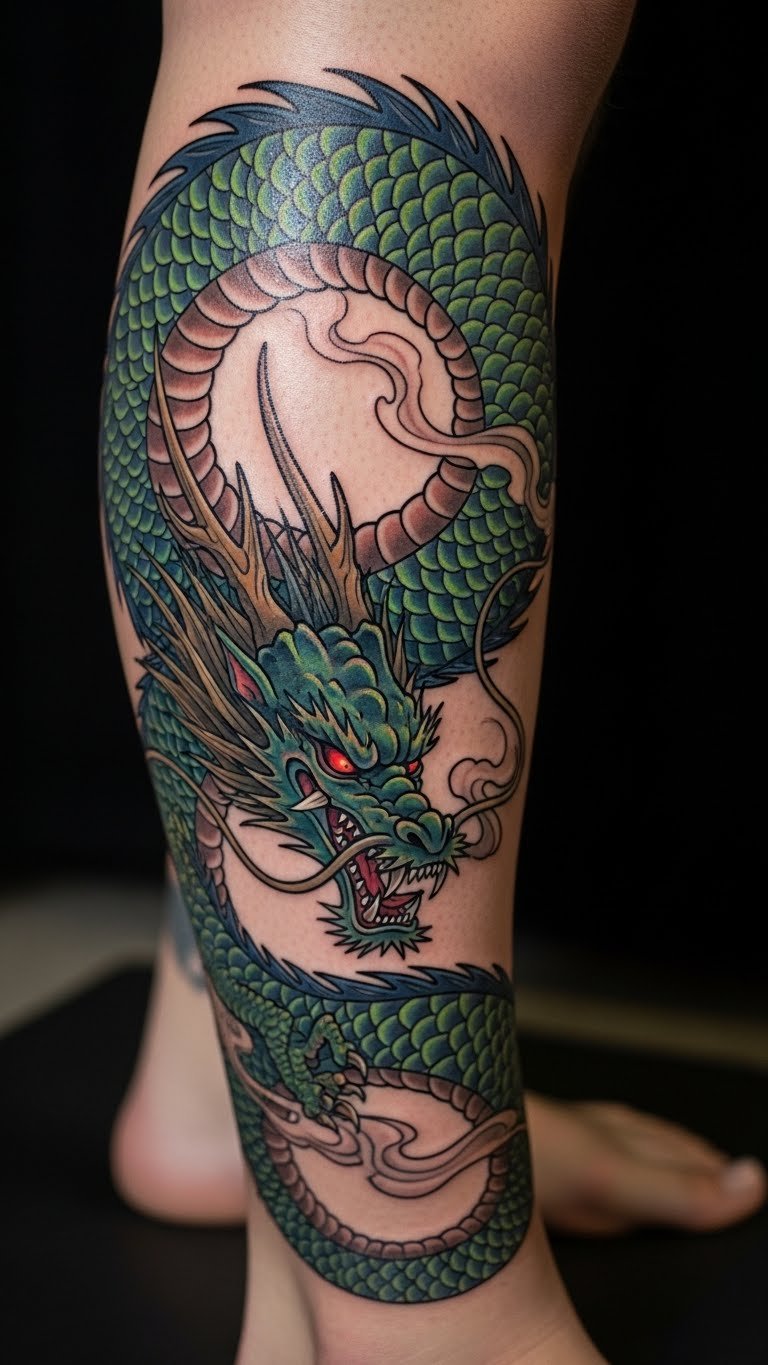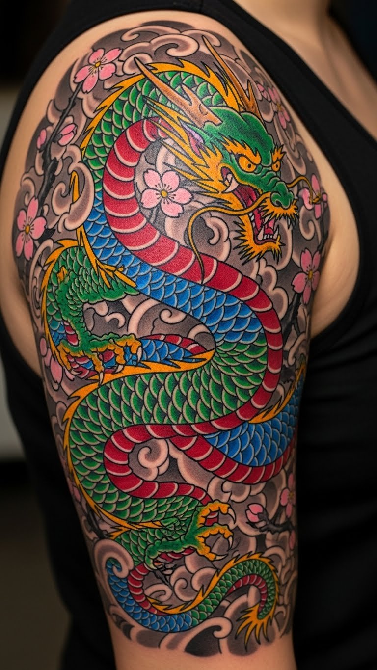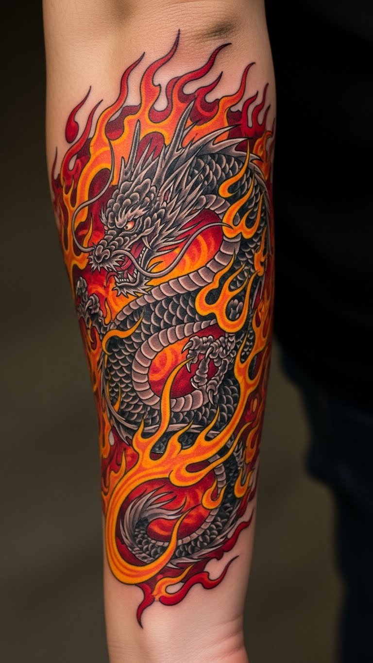 Imagine a warrior dragon in Irezumi style, rich and traditional. This honors heritage. Start with books. Try ink pens for sketches. Cost: $200–500. Customize waves. Longer sessions; care with ointments. It means courage. Arm for visibility. Tips: research respectfully, book early, and follow up. This design strengthens resolve.