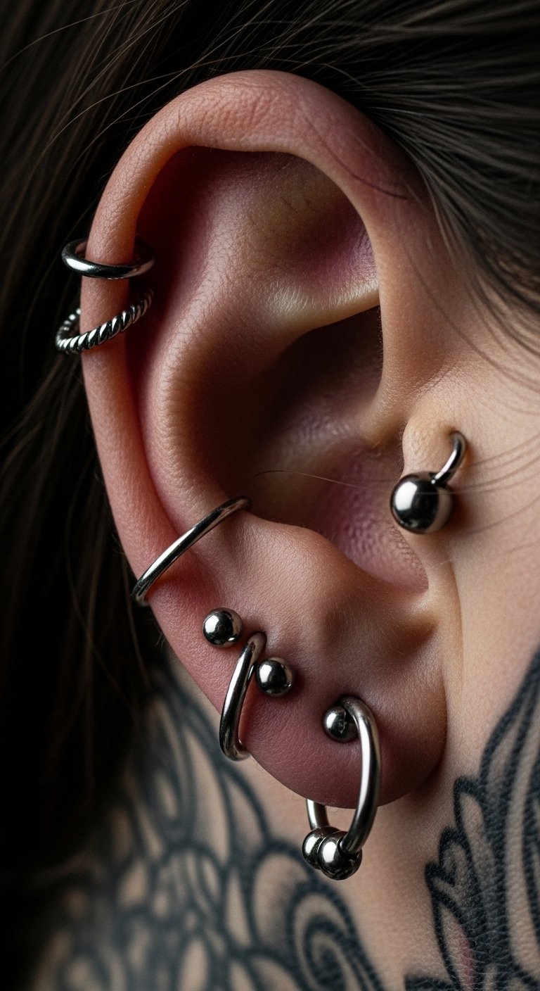 Combining Ear Tattoos with Multiple Piercings