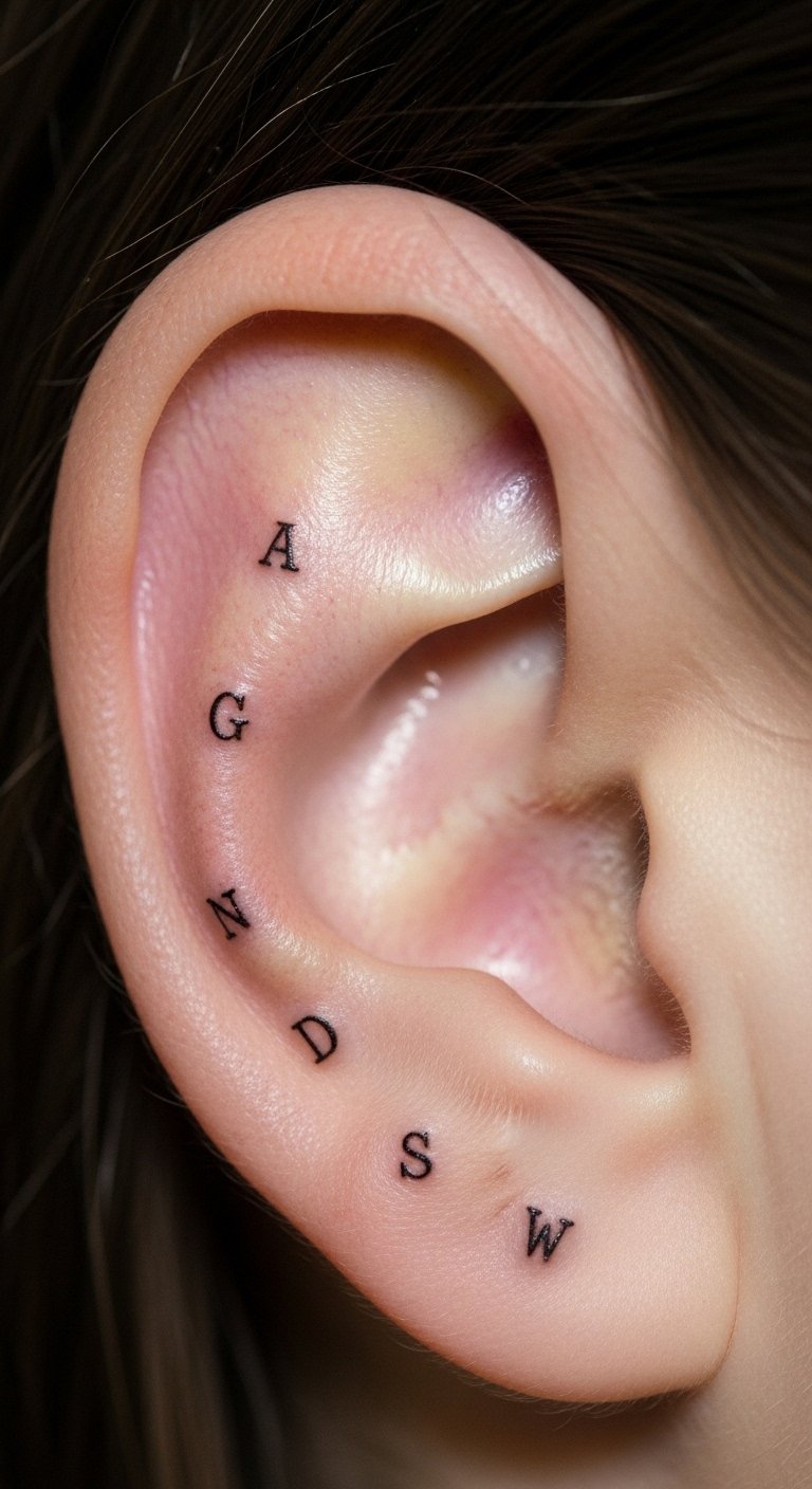 Tiny initials on the helix honor people close to you. It’s a personal touch that’s easy to conceal. Write initials on paper and test with a marker for zero cost. Shops might charge $30-60. Make it about family or friends. DIY idea: Cut initials from tape and apply temporarily for $1. This shows how they fit your style. Choose a spot that suits your lifestyle.