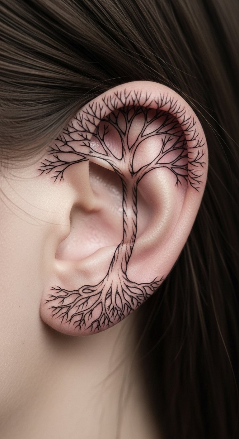 Mixing tattoos with piercings creates a cool, layered style on your ear. Add a dot or line near your hoops for extra flair. It balances the look without overwhelming. Start by arranging your current piercings and sketching tattoos around them. Use household items like string for mock-ups, costing nothing. Local artists charge $50-90 for this combo. Choose designs that flow with your jewelry. A budget idea: Buy affordable piercing fakes online for $10 to test. This helps see the full effect before committing. Keep it practical for work or play.