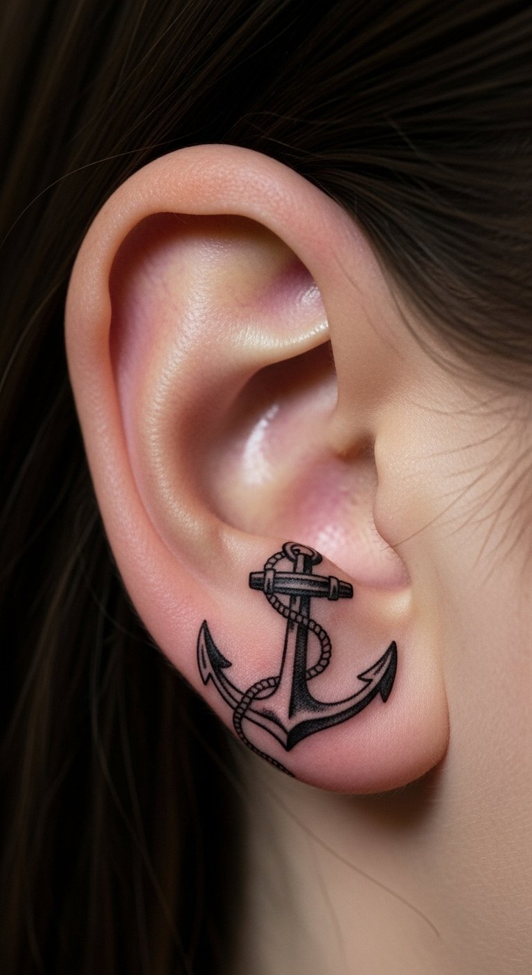 An anchor on the earlobe offers stability. Sketch anchors fast. Fees $40-60. Represent grounding. Preview with stickers.