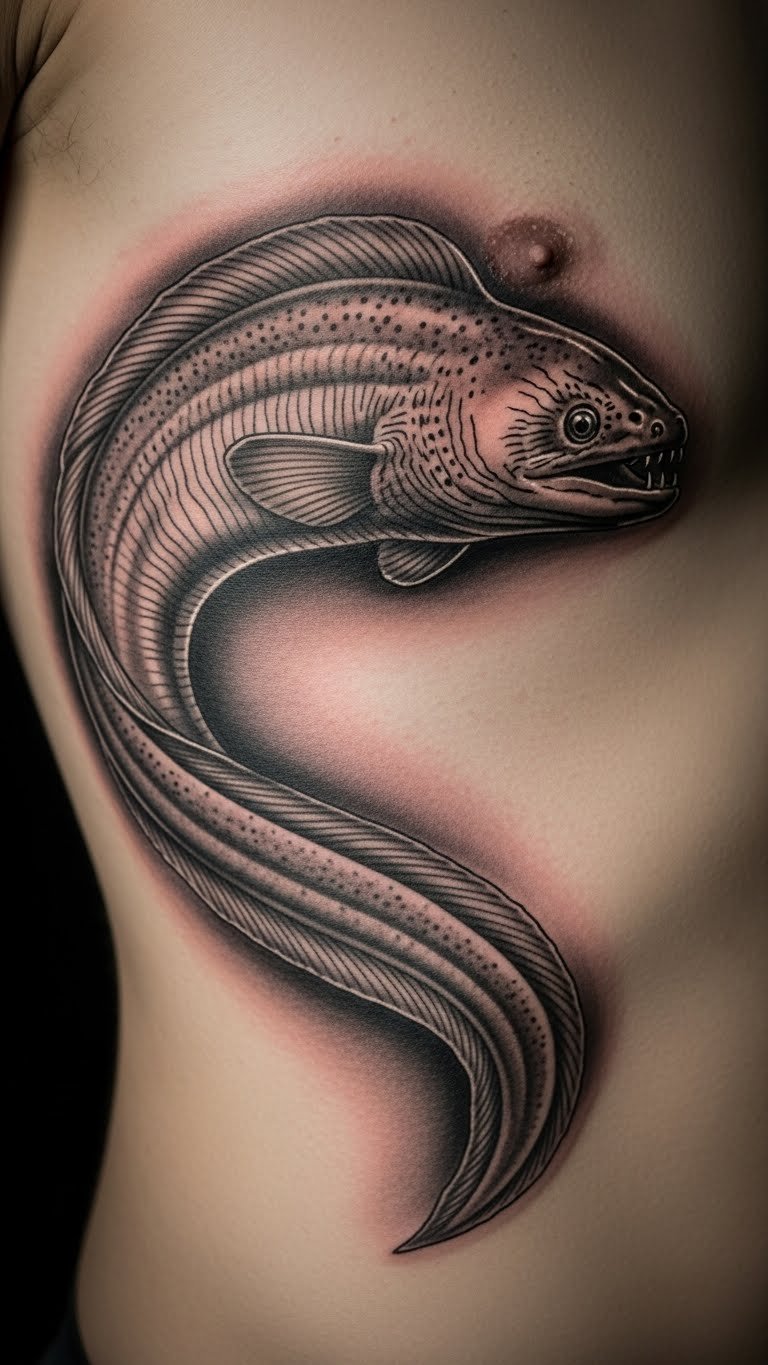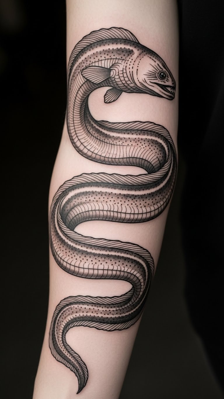 Small eels fit tight spots. Sketch tiny versions. Budget ink at $30. Use fine pens for details. Put it on your wrist for quick access. This design is discreet and personal.