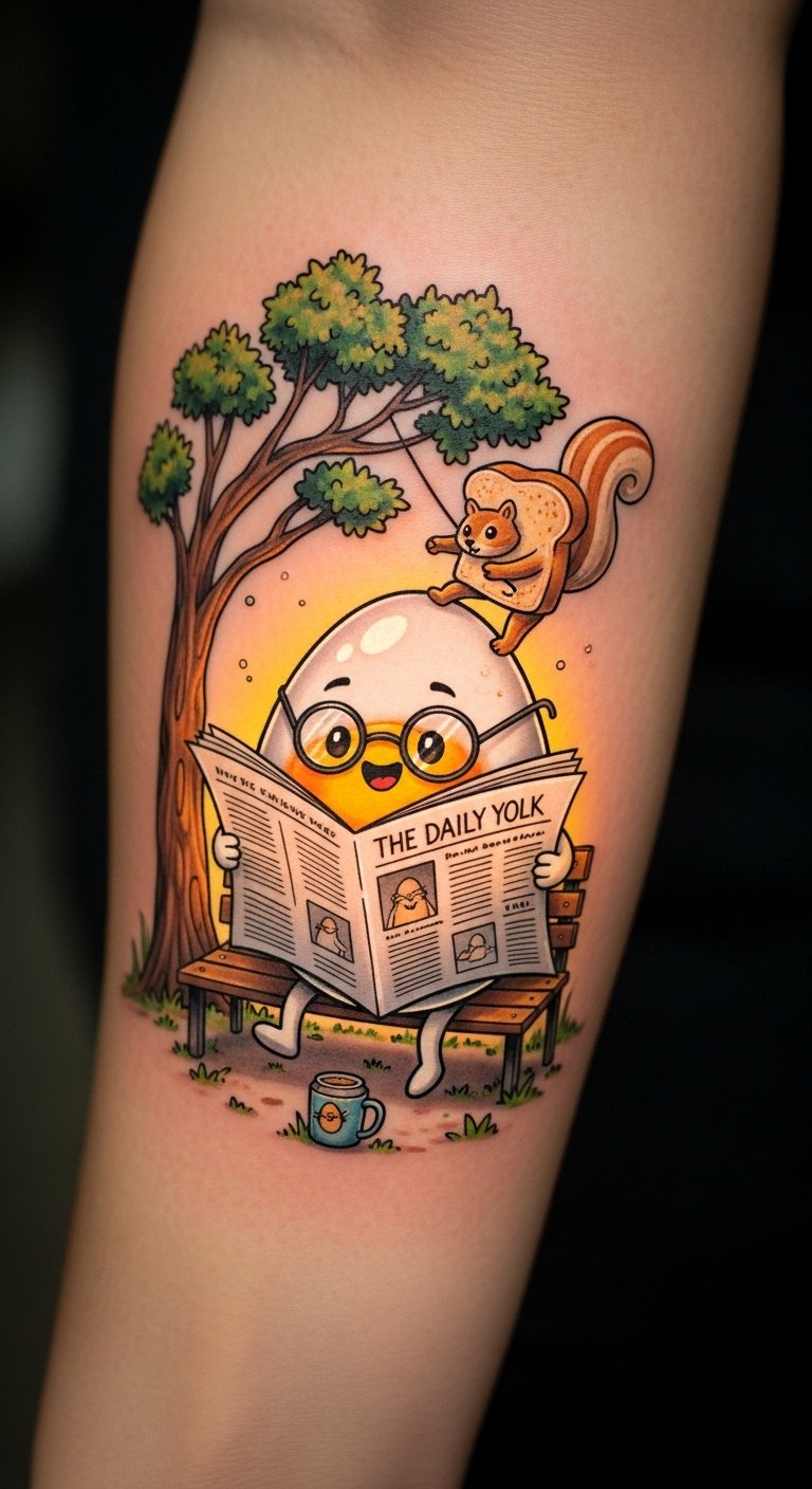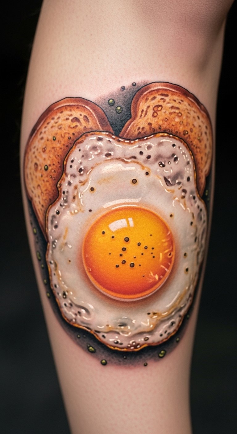 Combine eggs with breakfast vibes, like toast lines. It ties into your meals. Draw a quick version on paper with markers. It’s simple and free. Find tattoo spots with student discounts for savings. Tattoo it on your calf for easy viewing. Use stickers as a budget mock-up. Opt for smaller sizes to afford it. Include a bread outline for a fun touch. This design links to your kitchen life and sparks conversations.