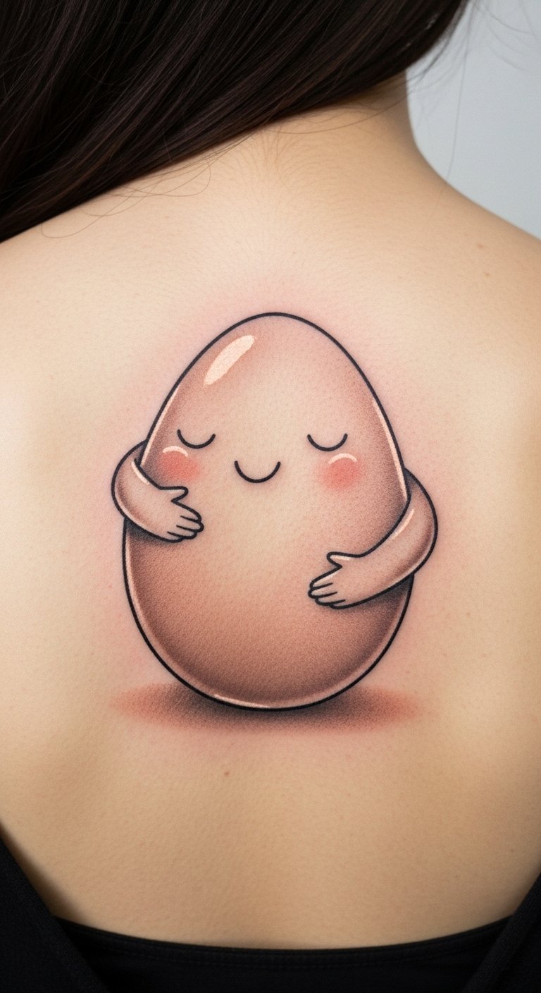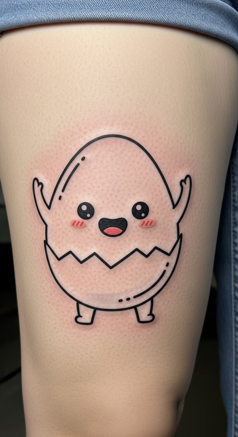 Make it fun with a smiling egg face. It brings joy. Sketch cartoons on scrap paper. Easy and free. Find online deals for artists. Tattoo it on your thigh for playfulness. Draw with crayons for a quick idea. Opt for tiny sizes to save. Include eyes for charm. This lifts your mood and daily routine.