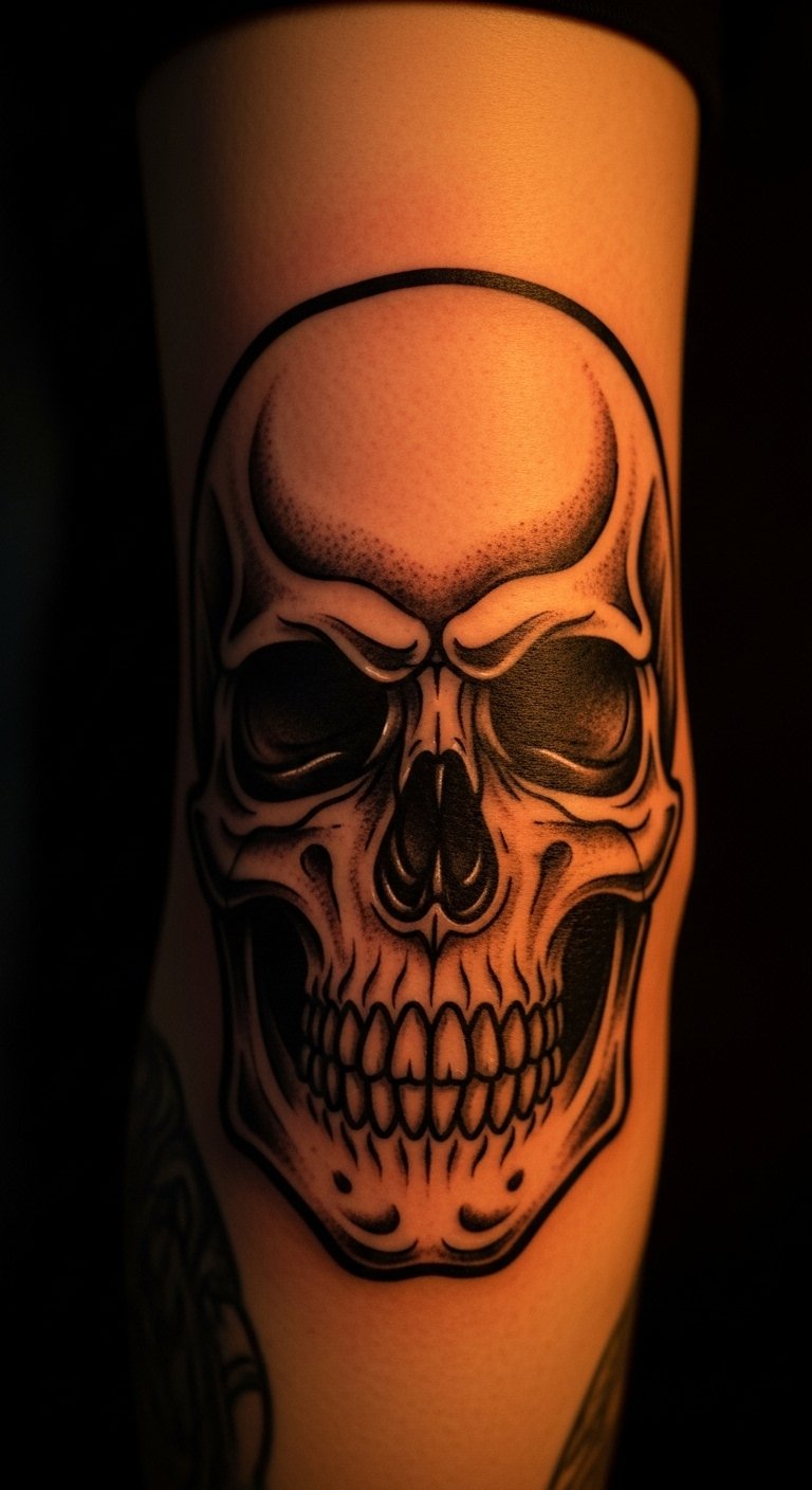 A skull tattoo says you’re tough and aware. Place it on your elbow for that extra edge. Opt for black ink to save money. It might cost $150 or less. Draw a quick sketch at home to test ideas. Use free apps on your phone for designs. Short sessions with an artist help manage pain. Keep it simple with clean lines. After, protect it from sun with cheap sleeves. This design links to confidence and fits casual wear. Choose an experienced pro for best results. It’s a easy way to add personality to your style.