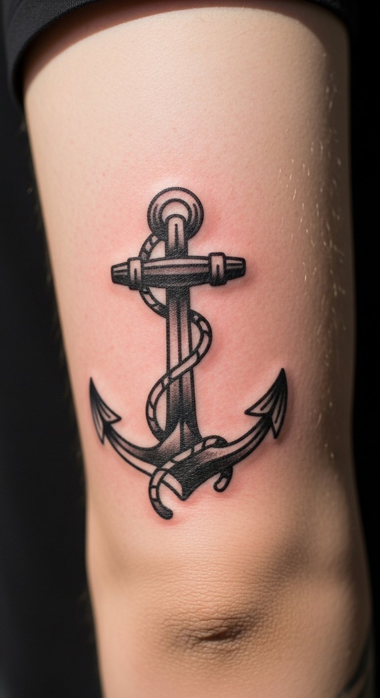 An anchor on your elbow grounds your story. It’s a nod to stability with old-school flair. Choose simple outlines for a budget of about $110. Sketch it roughly at home for a quick plan. This lets you adjust the size. Use straight lines for a timeless feel. Heal by keeping the area dry and clean. Pair it with your daily activities easily. It’s great for those wanting classic vibes. Look for artists with traditional portfolios. This tattoo makes a reliable personal mark.