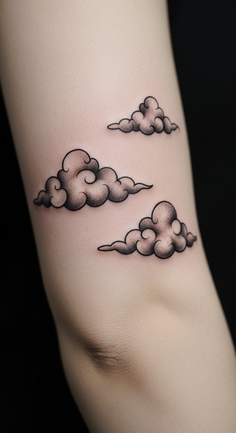 Cloud tattoos add whimsy to your elbow. They bring lightness in fun forms. Pick fluffy outlines for $130. Draw clouds on paper for DIY ideas. Adjust for the elbow’s bend. Keep them playful yet simple. Use basic lotions for aftercare. It’s ideal for creative types. Select an artist with light themes. This design lifts your look easily.