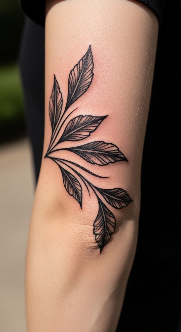 Leaf designs for a relaxed vibe on your elbow. They add a playful touch. Go for easy shapes at $120. Draw leaves casually at home. This tests the feel. Use soft lines. Heal with simple routines. It’s fun for casual folks. Find an artist with niche styles. This design chills your look.