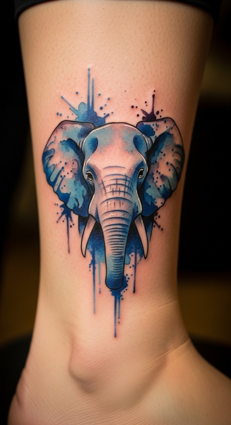 2. Watercolor Elephant on the Ankle